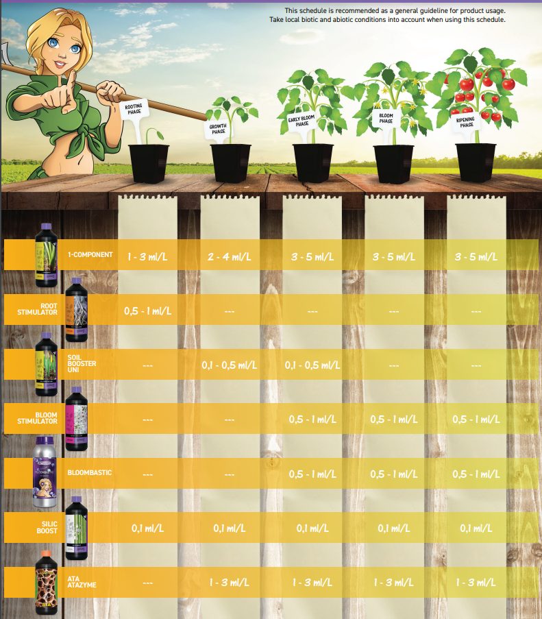 Les différents tableaux de culture Atami sont détaillés ci-dessous et fournissent les bases pour commencer à produire, améliorer et perfectionner ses propres cultures.