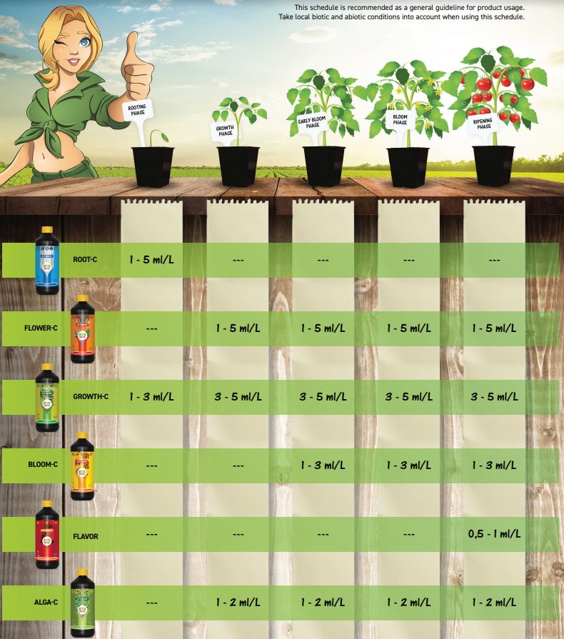 - Flower-C : 3e-9e semaines : 1 à 5 ml/L